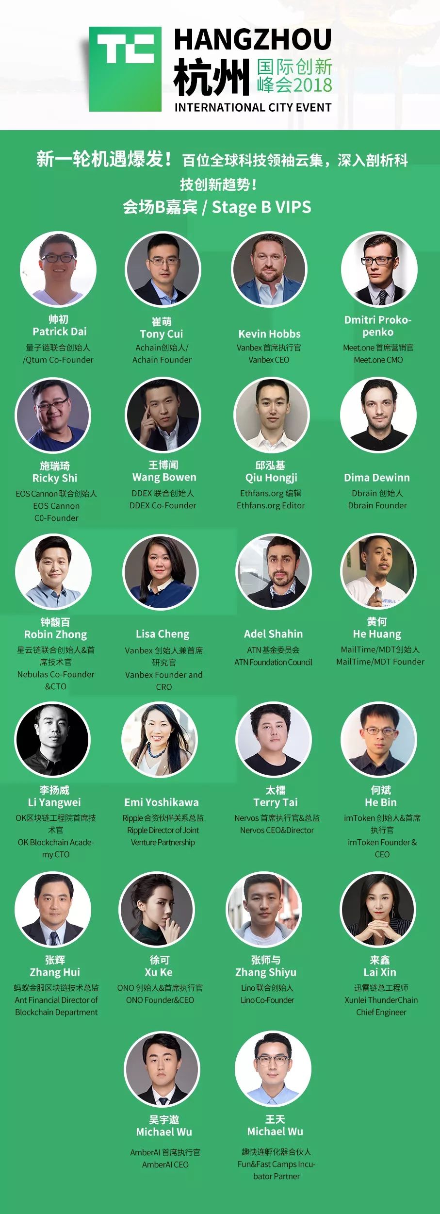 本年TC杭州将特别建立区块链分会场。预备倾听立异型的创业公司是怎样在中心化企业巨子割据的工业中锋芒毕露,分得一席之地。人工智能与区块链技能结合;EOS引爆的抢手话题和谁是下一个挑战者的评论;区块链技能为根底的交际网络,更多精彩尽在TC区块链分会场。