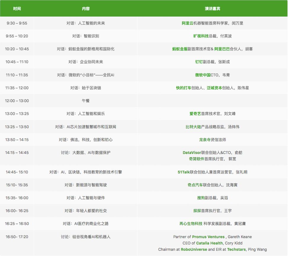 AI传奇人物:科沃斯机器人副总经理兼董事会秘书 马建军、 Rokid联合开创人 王舜德 、 天壤围棋CEO 薛贵荣、51Talk联合开创人&首席运营官 张礼明、搜狗副总裁 吴滔、极棒开创人 王琦、爱奇艺首席技能官 刘文峰、DataVisor联合开创人&CTO 俞舫、奇简软件首席履行官 郭宽、Partner of Promus Ventures Gareth Keane、CEO of Catalia Health Cory Kidd、Chairman at RoboUniverse and EIR at Techstars Ping Wang